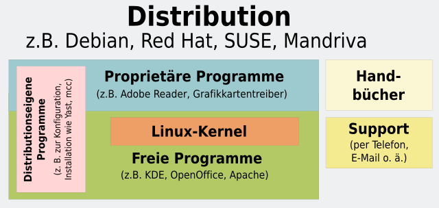 Linux-Distributionen bestehen aus mehreren wesentlichen Komponenten:
