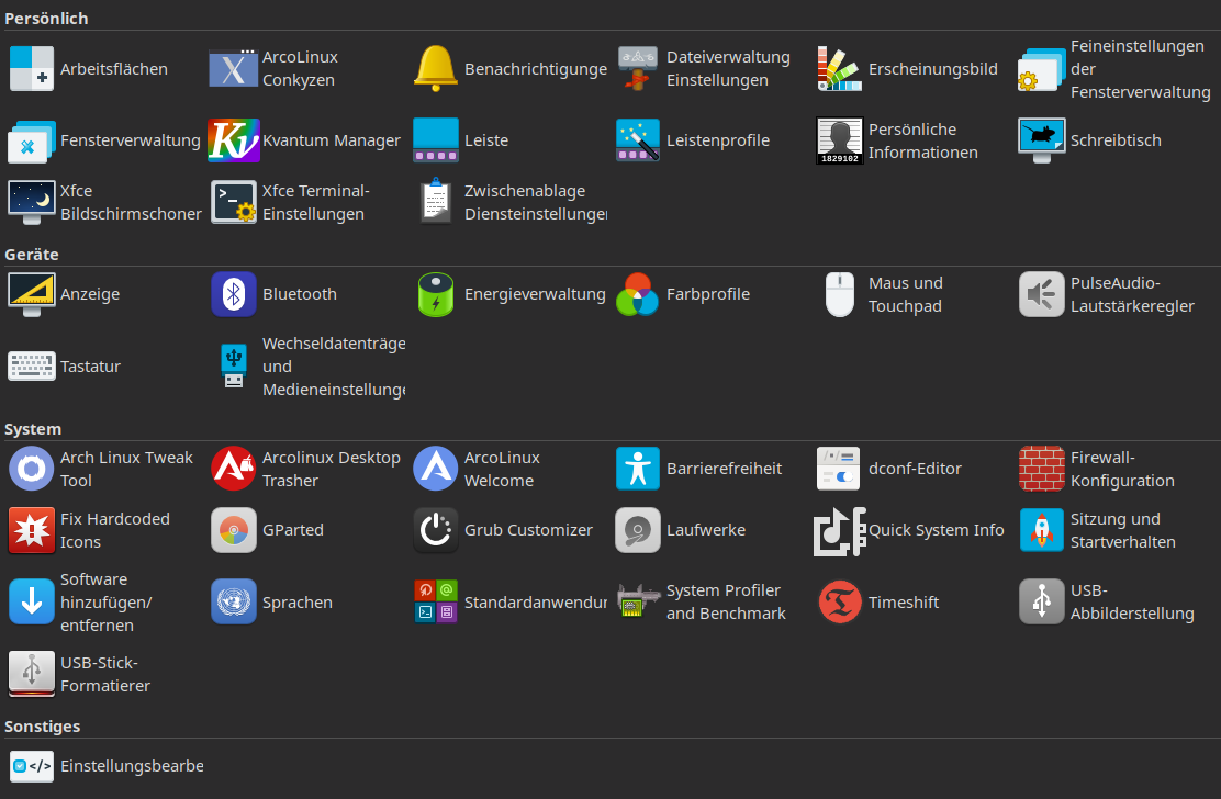 Arcolinux bietet neuerdings auch das Programm Sofirem an. Damit können alle von Arcolinux angebotenen Programme, Themes, Fonts usw. installiert werden.